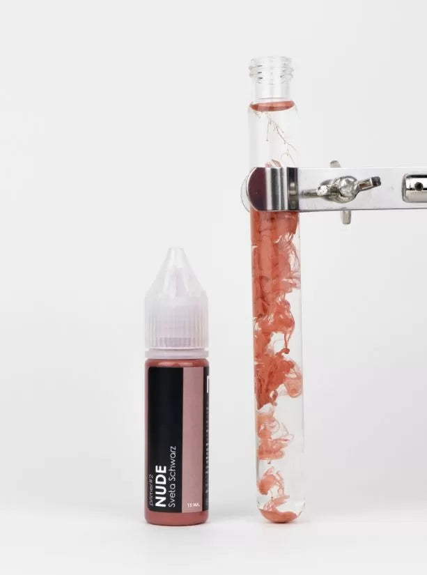 #2 Nude is an optimally balanced natural shade, pastel pink or beige-pink. It can be used with or without contours. Very versatile. Suitable not only as a base but also as a standalone shade. It's important to maintain superficial implantation and not overload the lips. You get a uniform natural color, can shape it, and no one will notice it's permanent makeup. It's not recommended to create a lipstick effect on older lips.